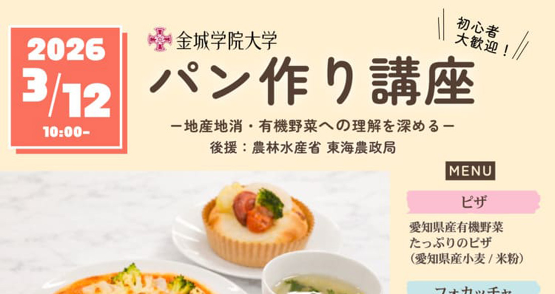 2026年3月12日(木)【東海農政局後援】有機野菜たっぷり!パン作り講座を開催- 場所:金城学院大学W3棟3階 調理学実習室